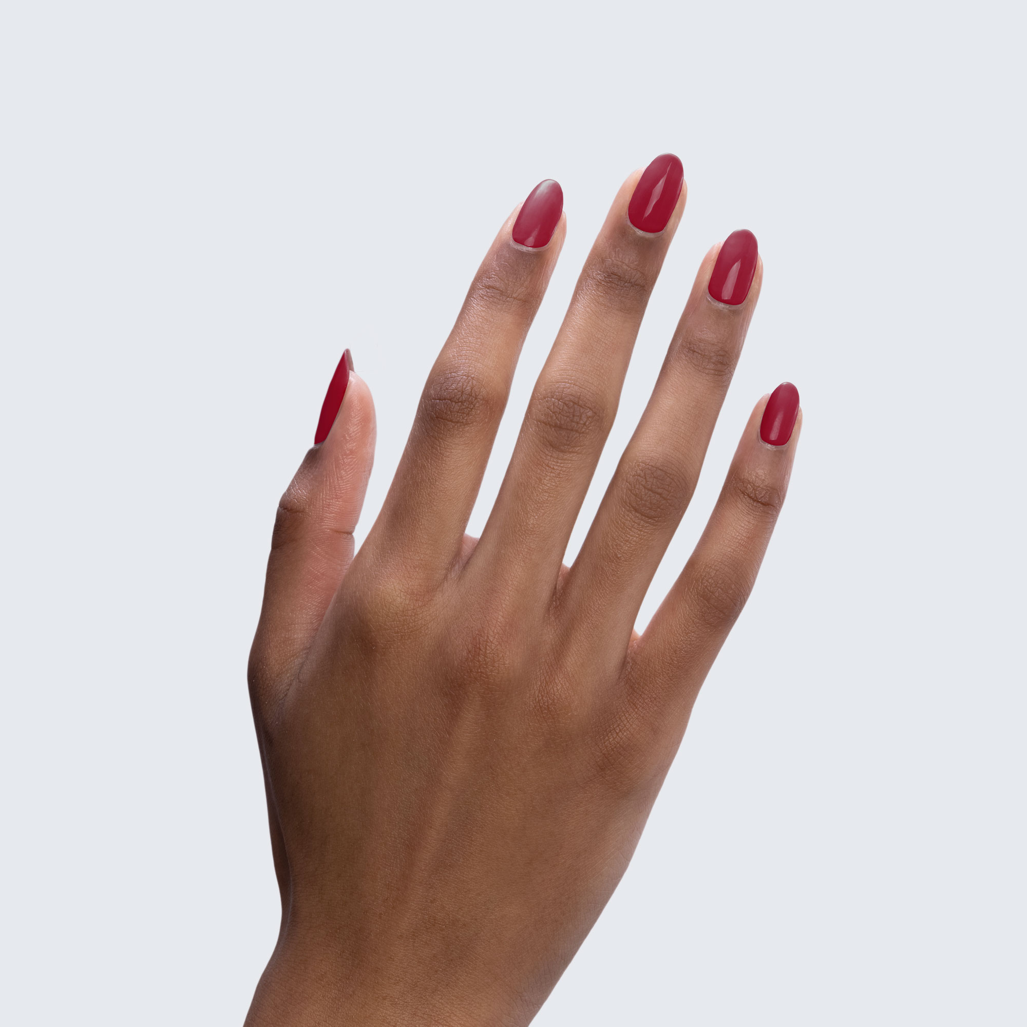 True burgundy. Dark. Opaque. Warm undertone.